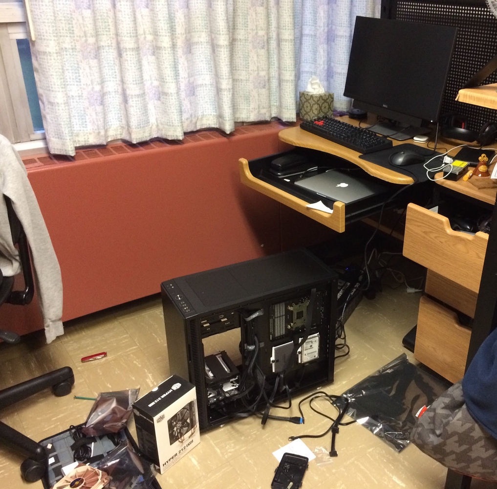 Assembling my rebuilt desktop was pretty much the first thing I did in my dorm room after moving in.