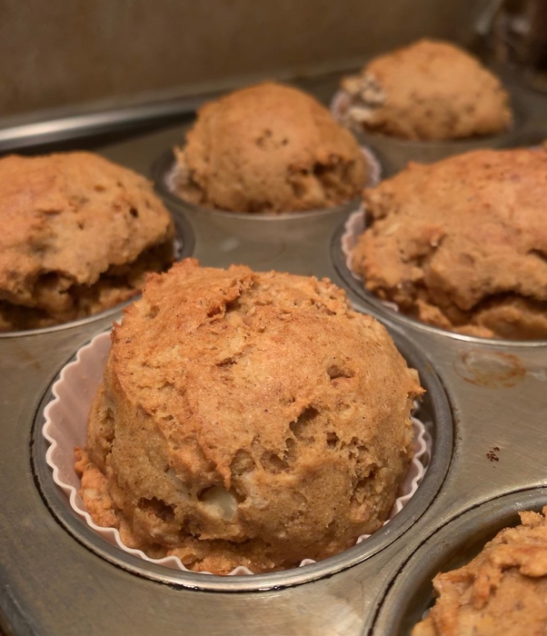 We received some persimmons in our CSA box, and they were starting to become over-ripe, so I decided to bake them into Persimmon-Walnut Muffins. I’d never had persimmons before – their taste is hard to describe, sort of like a watered-down apricot with the texture of a tomato. Once they were pureed and baked into the muffin, that taste blended in with the other fall spices. So, I wouldn’t go out and buy persimmons again, but they made some tasty muffins: