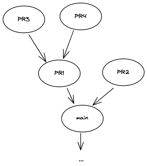 “Stacked PRs” is the practice of breaking up a large change into smaller, individually reviewable PRs which can depend on each other, forming a DAG: